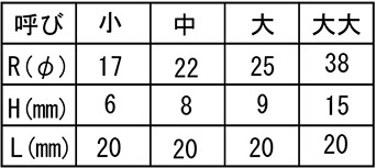 38Φ、25Φ、22Φ、17Φの4種類のサイズがあります。