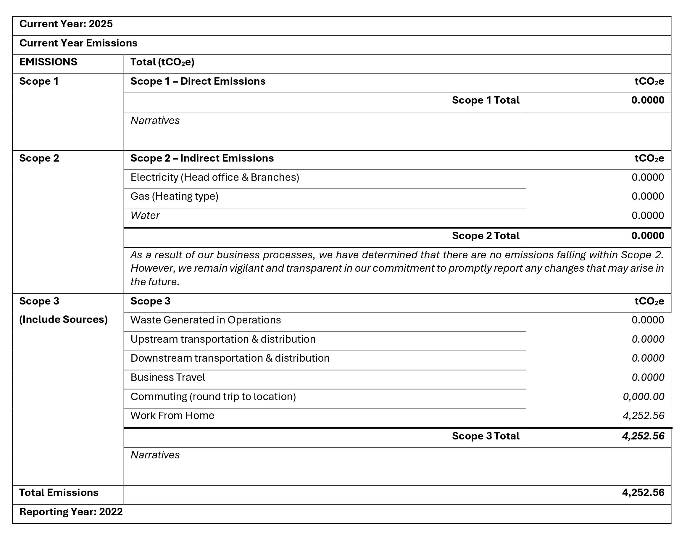 In cases where specific emission data is unavailable, we will use industry averages to estimate emissions. This approach will provide a comprehensive overview of our carbon footprint, even in areas where precise data may be challenging to obtain. However, our commitment is to refine and improve data accuracy over time as we gather more information.